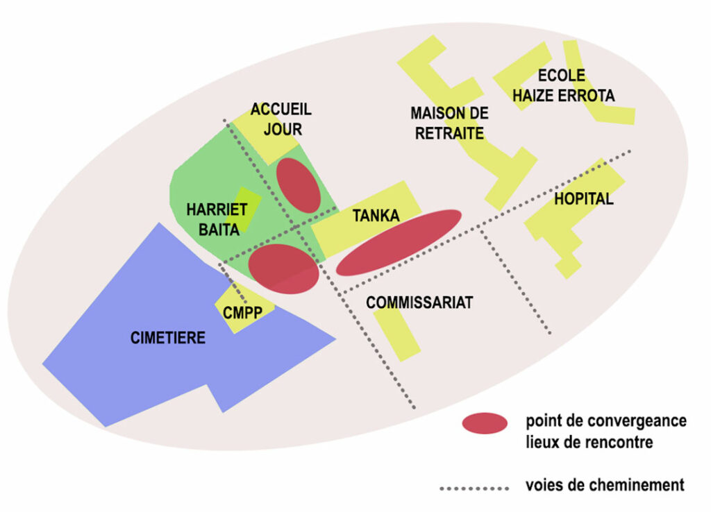 Elle définit les principes fondamentaux du projet — solidarité, coopération, transparence, intérêt général — et met en place quelques équipements structurants indispensables au bon fonctionnement du site : la réhabilitation d’Harriet Baïta, l’accueil de jour consolidé, la cuisine centrale municipale, l’espace culturel modulable, les aménagements publics et les circulations douces.